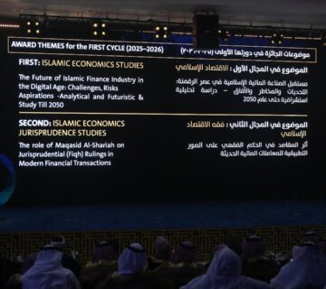 Announcing the topics of the Saleh Kamel Prize for Islamic Economics during the opening ceremony of the 45th Al-Baraka Symposium in Medina.